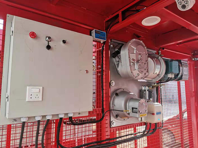 SC系列施工升降機是靠電機驅動齒輪,在齒條上上下滾動來提升吊籠內人和貨物的一種電梯,該設備安裝有防墜落安全裝置、超載裝置